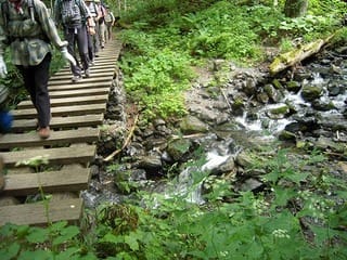 徳本峠に行くには、上高地河童橋から明神を通過して登山道へ。