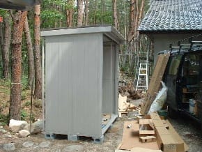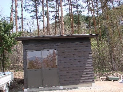 ん、あの納屋は? 母屋にあわせた棟梁お得意のデザインもの。