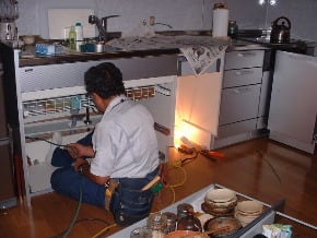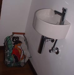 浄化槽の負担を小さくするため、台所の排水は4重の網をくぐらせている。
