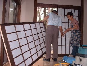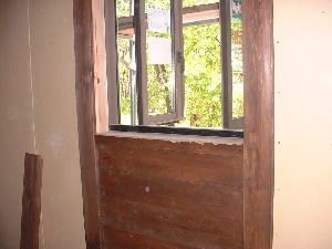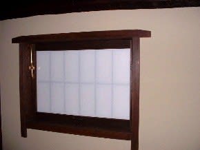 小川村の民家の庭にあった書院風障子を格安で譲っていただき、棟梁が再生した小窓です