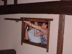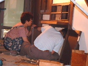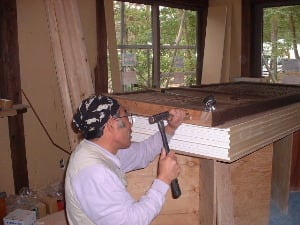 写真左:開閉式の蝶番や真鍮製ストッパーの取り付けにご苦労が・・・