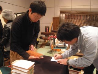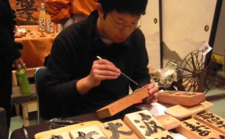 「ほうろく焼」のごまみそをペロリ。香りが高く粉のねばり方もいい