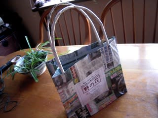 ラップや白紙袋で種類ごとに包み、手作りの新聞紙袋に。