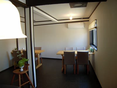旧道(塩の道千国街道)沿いの古民家を改装した、座席ゆったりのお店です