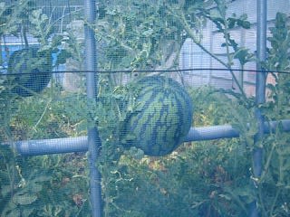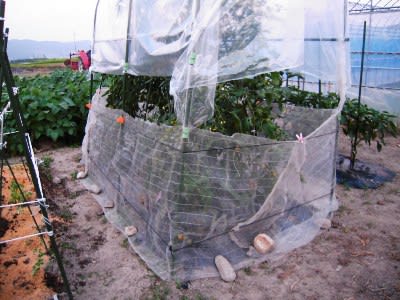 わが畑の被害はトマト少々ですみ対策完了しているが、小玉スイカにも防止策を考える。