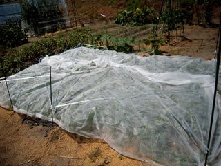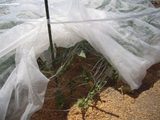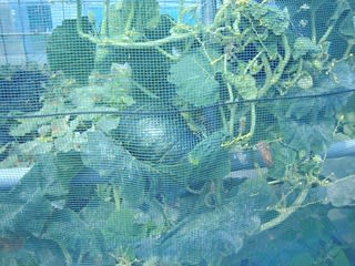 四辺の際にキュウリのつる用ネットを被せた。足をひっかけ凝りるのではと睨んだが・・・