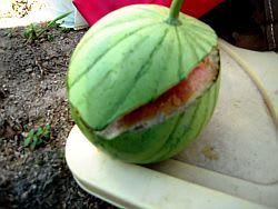 「スイカはカラスに食べられたよ」
