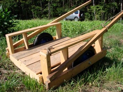 2×2.5メートルくらい四方に支柱棒を数本立て、ビニール紐で無作為クロス。これより延びるつるは内側に巻き込んだ