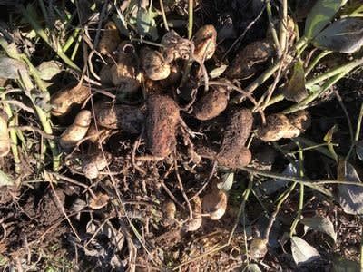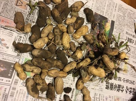 収穫までもう少しの落花生。土の中でどんな顔をしているのか楽しみ。 葉っぱや茎の部分が少し枯れて、黄色くなってたら収穫のサインだそうです。