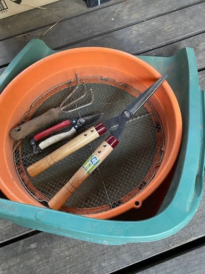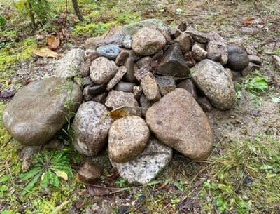 砂地なので水と肥料の流失防止のため、掘ったあとに詰める石ころをかき集めた残り。大きい石は別にしてこの2倍ほどを利用したと思う。