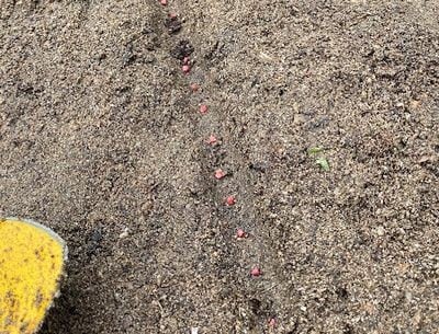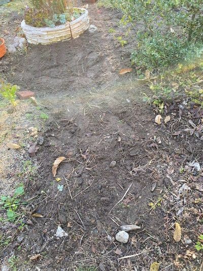 畝を作るための元肥を入れる作業開始前に畝部分にも石を投入。これは敷き詰めすぎては根詰まりを起こしそう。注意!