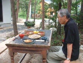 ここでも棟梁のこだわりで、有明(そのあたりの土地)の砂を敷き、回りからコケを