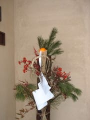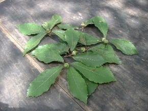 写真右:「喫茶ガルニ」のスタッフに教えていただいた常緑樹のそよご(冬青)