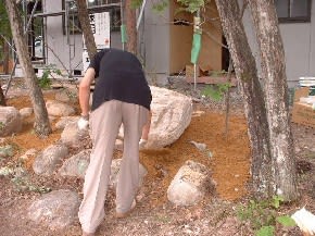 翌日、大きな石を除いたあとに、中小の石をいかにもでなく自然な存在感を持たせる