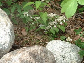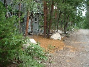 写真右:いやぁすっきりしました 東側アプローチの左右に鎮座する大きい石