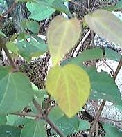 写真右:カツラの葉 若葉がこの色で、後に緑色ななるそうです