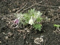 写真左:れんげつつじ 写真右:14日に植えた白馬の山あじさいがほんのり赤くなりました