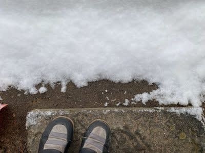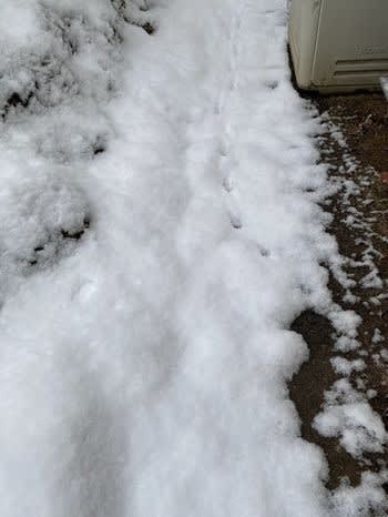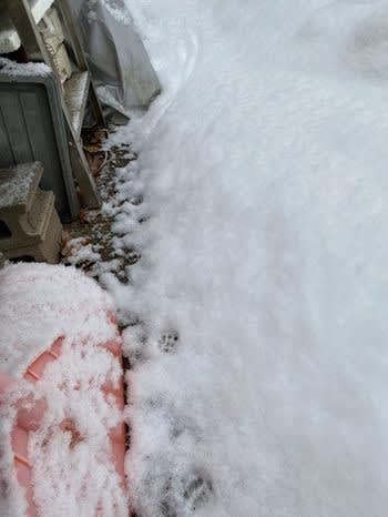 今日は晴天で昨日より気温が高いので、20センチの硬く積もったままの雪を削り覗いてみた。