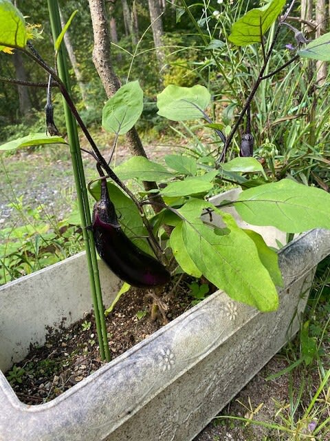 春の「タネから栽培」のナスが、さっぱり成長しなかったので応急的に苗を買いプランターに。