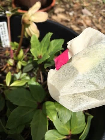懸案のクリスマスローズ。初めて植えたが手入れの面倒さが苦手だった。それでも種袋はかけておいた。