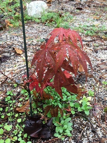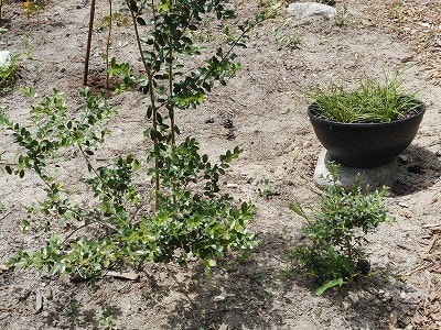 元からあるイチイの木や、イヌツゲとともに移植を終えた。
