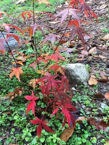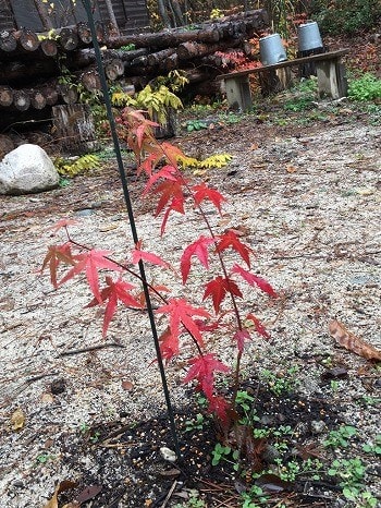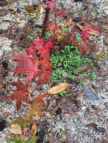 移植したモミジやクヌギ、ナラの幼木も、一丁前に紅葉や黄葉した。