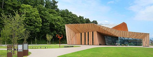 この交流館は新幹線飯山駅から徒歩3分のところにあり、その外観の美しさに驚きました。