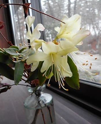 孫の誕生記念樹「利休梅(リキュウバイ)」が爽やかに咲いている