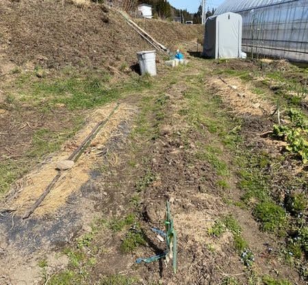 今年の畝を準備しながら保存し左側が今年のネギ畝。ここで4月中旬に100本を定植する予定。昨年購入した同じ生産者さんから購入予定。