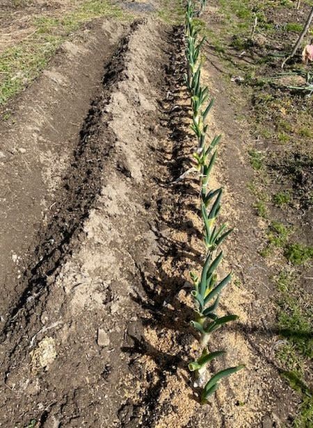 今年の植付けまでの面白い作業です。抜かずに畝に残っていたネギが30本ほどある。これを別の畝に植え替えておくと新しいネギとして成長するという。