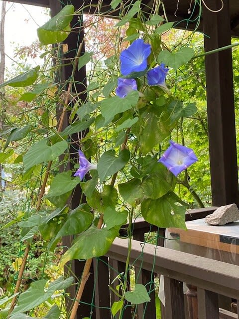 夏に芳しくなかったアサガオが今頃負けん気だして・・・