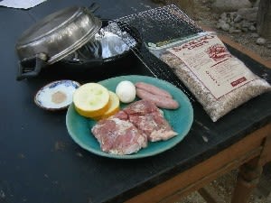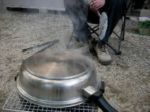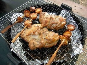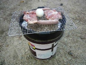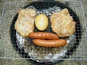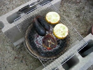 林の中の散歩とすずむし荘で汗を流し、今夜の夕食はまたまた庭でバーベキュー