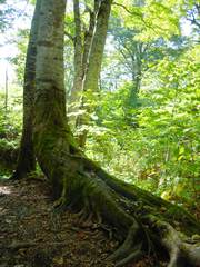 いきなり急登、ふうふう上がってブナ平へ。とにかく石と根ばかりだ。
