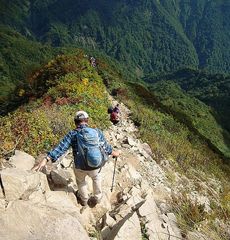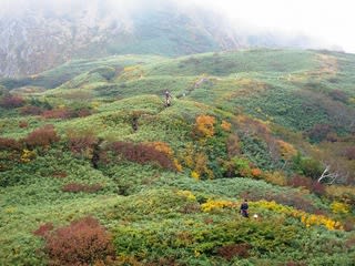 登りの人ごみに比べると下りが少ないのは、新潟県側の登山口最寄りには”雨飾温泉”といういい湯があるそうだ。梶山コースという