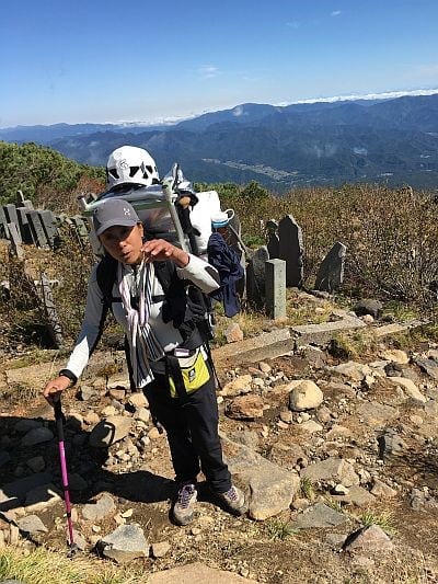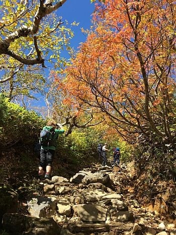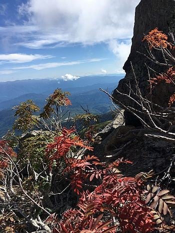 まもなく頂上小屋へカーブを切るあたりで、ガイドさんが私にカラビナとロープでサポートしてくださった。崩落があり迂回路を設営された岩場です。このような修復も小屋や登山案内人組合などのボランティアで行われます。県からの補助金はあるかと思いますが、大変なご苦労の上に我々は安全に楽しませていただいているのですね。