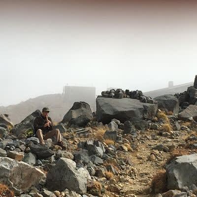 夜中の暴風に翌朝の登頂は思いやられるかと思ったが、ぐっすり眠り結局霧ではあったがリュックをデポし7:00 いざ!