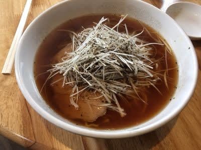 絶品ネギの下に厚めの柔らかいチャーシューが潜んでいます。しつこさのない半透明の汁で黒コショウがばっちりです。外食でラーメンを頂くことはまずないのですが、ここは特別。