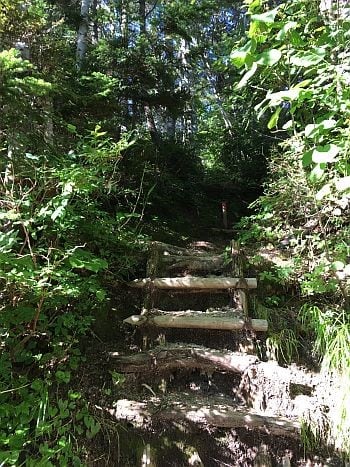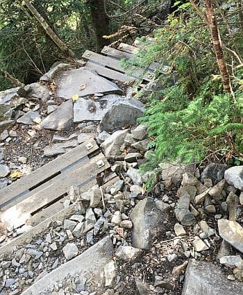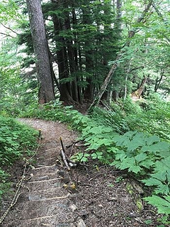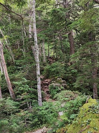ラマラマメンバーや蝶ケ岳小屋や安曇野市の補助などで、荒れた登山道の階段は180段。