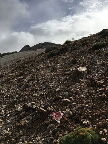 上高地から登ってくる道があり、なんとも軽装でひょいひょいと歩いています。