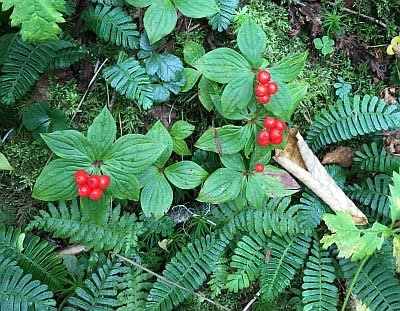花の時期は終わり、ゴゼンタチバナの実が美しい