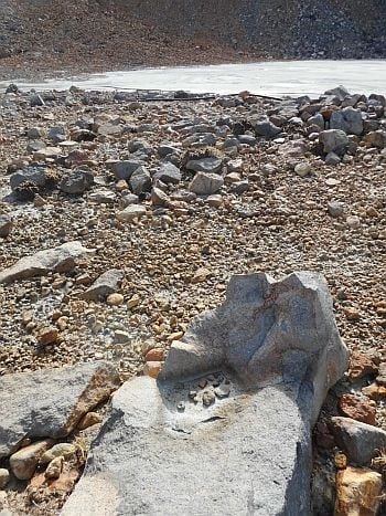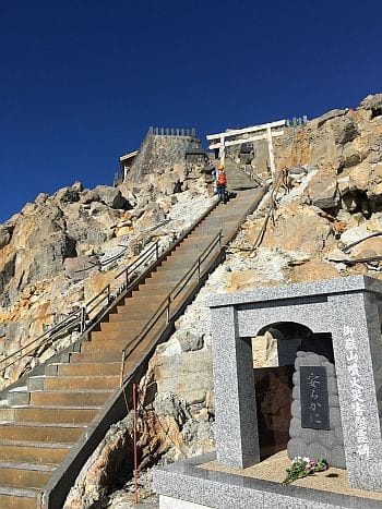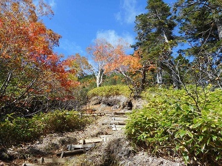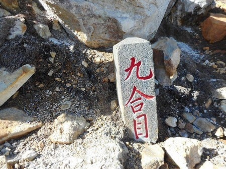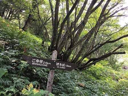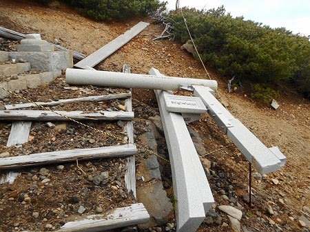 右折角にザックかストックを置くと「今ここから降りています」の合図となる。