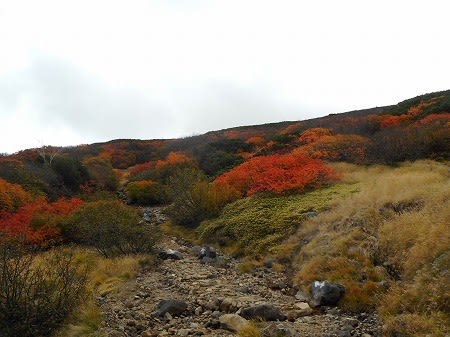 左手山側に小さい滝(雪どけ水でしょう)が見え、