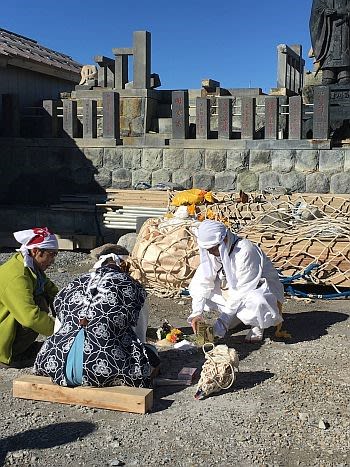 その後の休憩小屋で大歓声があがったのは、そばの川か池でニジマスを釣り上げたと。
