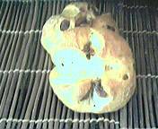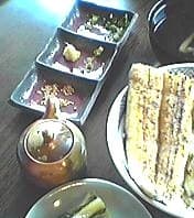 写真左:夕やけの空に魚が二匹、遠赤外線で綺麗に焼けました