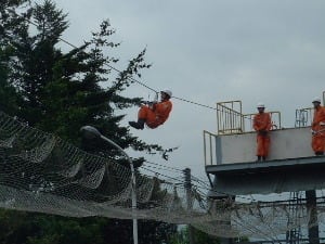 写真左:地球は丸い!の実感を手すり柵のアールが示す(素晴らしい設計)