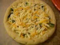 写真左:現地スーパーマーケット調達の生地とチーズで作った(塩抜き)野沢菜ピザ