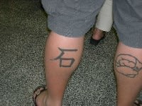 写真右:タワーレコードのレジにて。tattooもTシャツも文字が流行
