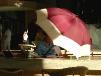 写真左:強い西日を避けて(日本なら我慢するか、日よけを設けるだろうな)