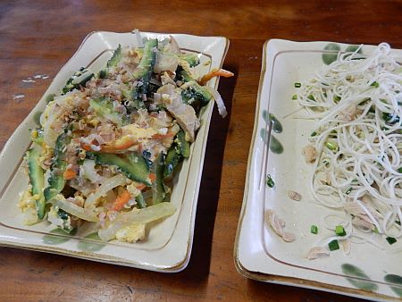 定番の豚肉や野菜炒めに加えたチャンプルーでした。