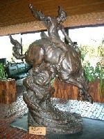 碌山作 安曇鋳のブロンズ像2点「女」と「北條虎吉肖像」は当時文部省美術展に